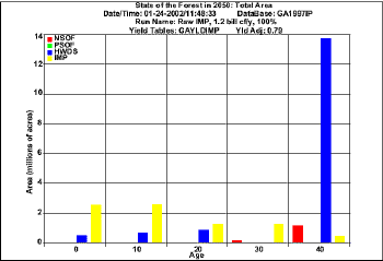 Projection  for harvesting 1.2  bil. cf/y using raw FIA data (Total Area)