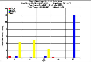 Projection for harvesting 1.8 bil. cf/y using raw FIA data (Total Area)
