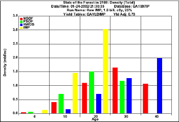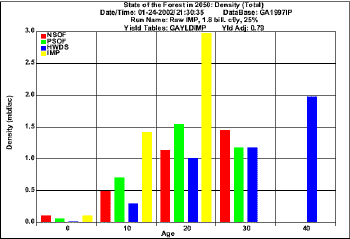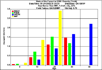 Projection  for harvesting 1.8  bil. cf/y using raw FIA data (Density)
