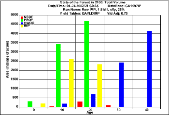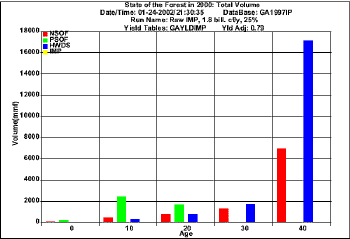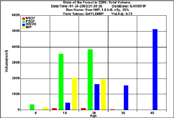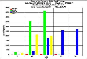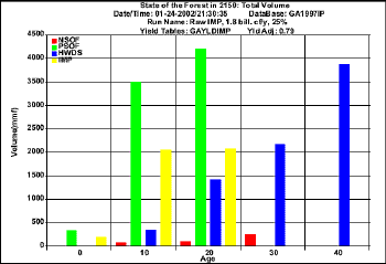 Projection  for harvesting 1.8  bil. cf/y using raw FIA data (Volume)