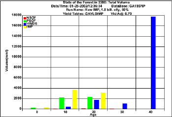 Projection for harvesting 1.8 bil. cf/y using raw FIA data (Volume)