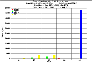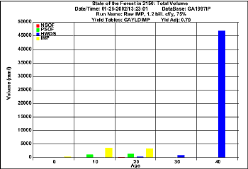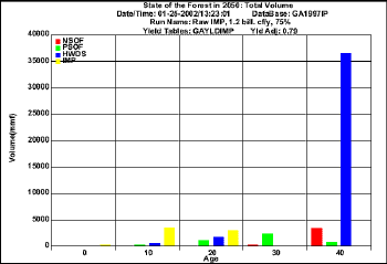 Projection  for harvesting 1.2  bil. cf/y using raw FIA data (Volume)