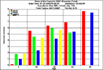 Projection for harvesting 1.8 bil. cf/y using raw FIA data (Diameter)